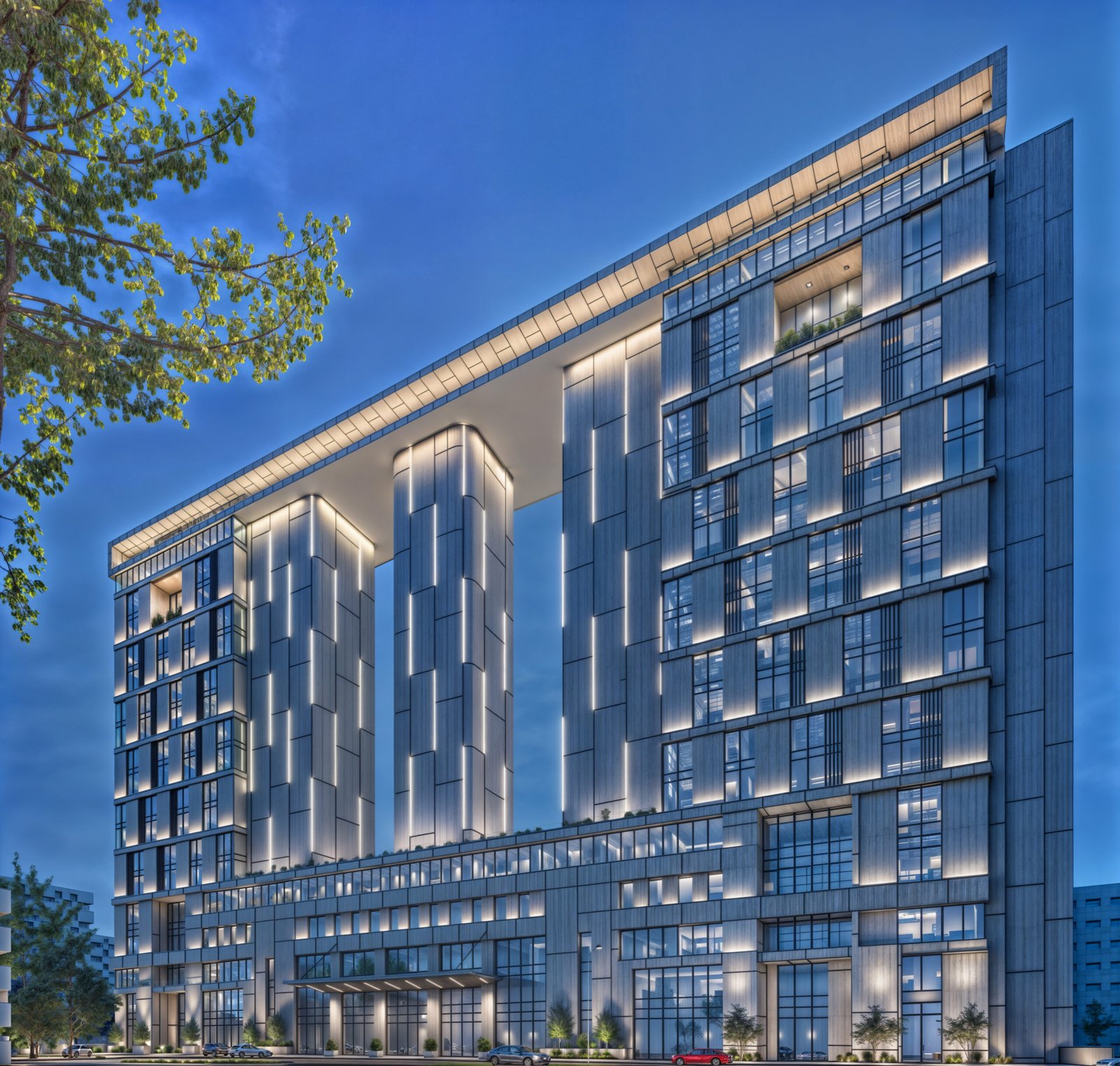 ﻳﻘﻊ ﺑﺮج اﻟﻌﻠﻴﺎ ﻓﻲ اﻟﻌﺼﺐ اﻟﺘﺠﺎري ﻋﻠﻰ ﻃﺮﻳﻖ اﻟﻤﻠﻚ ﻓﻬﺪ وﻟﻬﺬا اﻟﻤﻮﻗﻊ اﻻﺳﱰاﺗﻴﺠﻲ اﻟﻤﻬﻢ ﺗﻢ إﺿﺎﻓﺔ أدوار وﺗﻌﺪﻳﻞ اﺳﺘﺨﺪاﻣﻪ ﻣﻦ اﻟﺨﺪﻣﺎت اﻟﻔﻨﺪﻗﻴﺔ اﻟﻰ ﻣﺒﻨﻰ ﻣﻜﺎﺗﺐ ﻛﻤﺎ ﻗﺪﻣﻨﺎ ﻣﻘﱰﺣﺎت ﻟﻴﻜﻮن ﻣﺒﻨﻰ ﻣﺘﻌﺪد اﻻﺳﺘﺨﺪام وذﻟﻚ ﻟﻴﺘﻢ اﺳﺘﻐﻼﻟﻪ اﻻﺳﺘﻐﻼل اﻷﻣﺜﻞ وﻟﻜﻲ ﺗﺰﻳﺪ اﻟﻤﺴﺎﺣﺔ اﻟﺘﺄﺟﲑﻳﺔ ﺗﻢ ﻋﻤﻞ إﺿﺎﻓﺔ ﻣﻜﻮﻧﺎت ﻓﻲ اﻟﺪور اﻟﺜﺎﻟﺚ واﻟﺪور اﻷﺧﲑ ﻟﻴﻜﻮن دور ﻣﻜﺘﺒﻲ ﺑﺎﻧﻮراﻣـــــــﻲ ﻳﻄﻞ ﻋﻠـــــــــــﻰ اﻟﻌﺼـــــــﺐ اﻟﺘﺠﺎري ﻛﺎﻣــــــﻼ